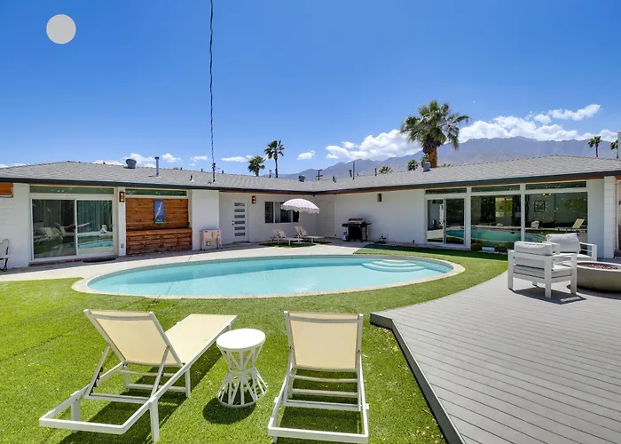 Internationaler Flughafen Palm Springs ist ungefähr 2 Kilometer von der Unterkunft entfernt, und Erlebnisbad Wet'n'Wild Palm Springs ist in einer Entfernung von ca. 15 Autominuten von der 1-Zimmer- 2 Mi To Dtwn Palm Springs Vibrant Home With Hot Tub. In der Umgebung befinden sich Einkaufsmöglichkeiten wie Kongresszentrum Palm Springs Convention Center (ist circa 10 Autominuten von der Unterkunft entfernt).